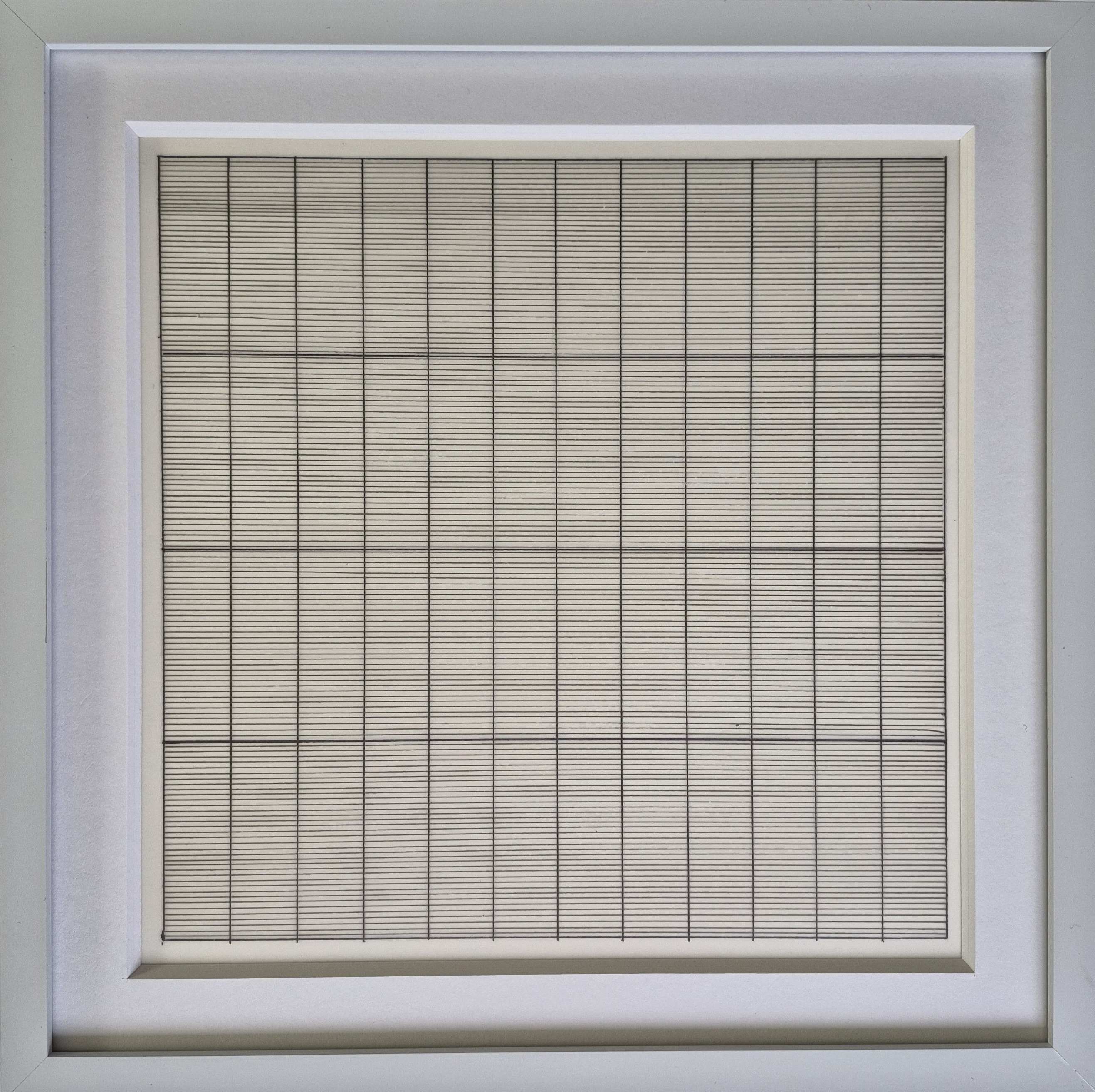 Lithografie auf Pergamentpapier (Vellum). – Uns signiert und unnummeriert. – Herausgegeben von Nemela & Lenzen GmbH, Mönchengladbach, und dem Stedelijk Museum, Amsterdam, anlässlich der Agnes-Martin-Retrospektive 1991 im Stedelijk Museum. Agnes Martins Untitled 3 (from Paintings and Drawings: 1974–1990) (1991) verkörpert ihr lebenslanges Streben nach Harmonie und Stille durch minimalistische Geometrie. Die Lithografie auf transparentem Pergament zeigt eine Komposition aus sorgfältig gesetzten horizontalen und vertikalen Linien, die längliche rechteckige Felder bilden. Mit ihrer sanften Präzision und rhythmischen Ordnung lädt die Arbeit zur kontemplativen Betrachtung ein – ganz im Sinne von Martins Überzeugung vom spirituellen Potenzial der Abstraktion. Sie wurde in einer unnummerierten Auflage von 2.500 Exemplaren für ihre Retrospektive im Stedelijk Museum in Amsterdam veröffentlicht.
