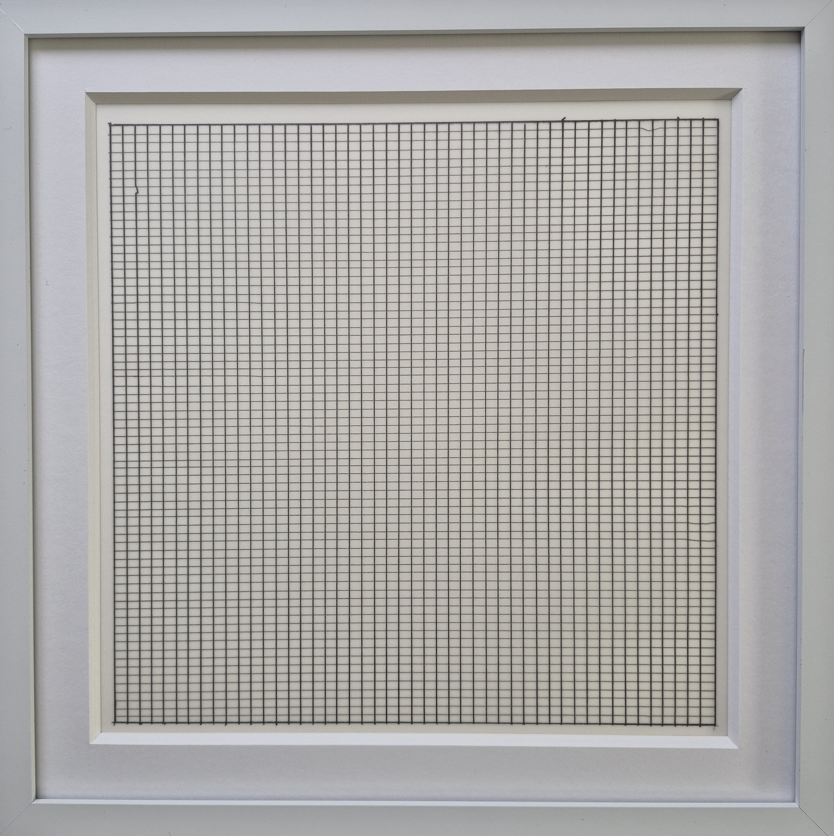 Litografía sobre pergamino vitela. – No firmada ni numerada. – Publicada por Nemela & Lenzen GmbH, Mönchengladbach, y el Stedelijk Museum, Ámsterdam, con motivo de la retrospectiva de Agnes Martin en 1991 en el Stedelijk Museum. Untitled 2 (from Paintings and Drawings: 1974–1990) (1991) de Agnes Martin continúa su exploración serena de la forma, el equilibrio y la percepción mediante un lenguaje minimalista. Esta litografía sobre pergamino muestra una cuadrícula delicadamente trazada a mano, un motivo recurrente en la obra de Martin que representa orden, armonía e introspección. Aunque no está firmada ni numerada, se produjo en una edición de 2.500 ejemplares para su retrospectiva en el Stedelijk Museum de Ámsterdam. La obra invita a una observación contemplativa, en consonancia con la creencia de Martin en el poder espiritual de la simplicidad y la repetición.