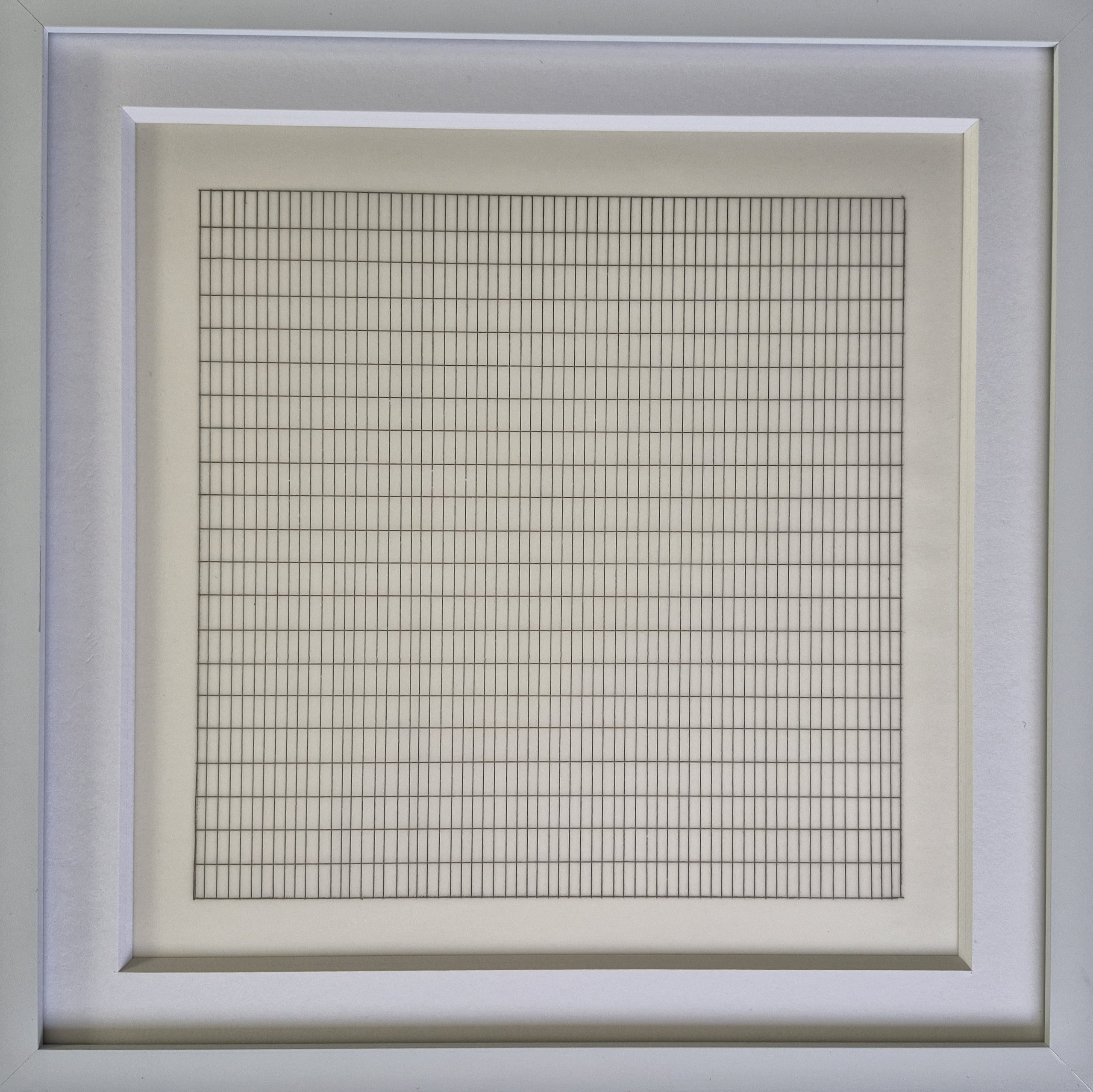 Litografía sobre pergamino vitela. – No firmada ni numerada. – Publicada por Nemela & Lenzen GmbH, Mönchengladbach, y el Stedelijk Museum, Ámsterdam, con motivo de la retrospectiva de Agnes Martin en 1991 en el Stedelijk Museum. Untitled 8 de Agnes Martin es una litografía de 1991 sobre pergamino, realizada para su retrospectiva en el Stedelijk Museum. La obra presenta una cuadrícula uniforme de líneas finas horizontales y verticales. Esta estructura regular, característica en el trabajo de Martin, se convierte en un espacio para la contemplación y la calma emocional. A pesar de su precisión mecánica, el grabado mantiene la sensibilidad silenciosa de sus obras dibujadas a mano. Editada en una tirada de 2500 ejemplares, esta pieza es un ejemplo claro de su minimalismo introspectivo.