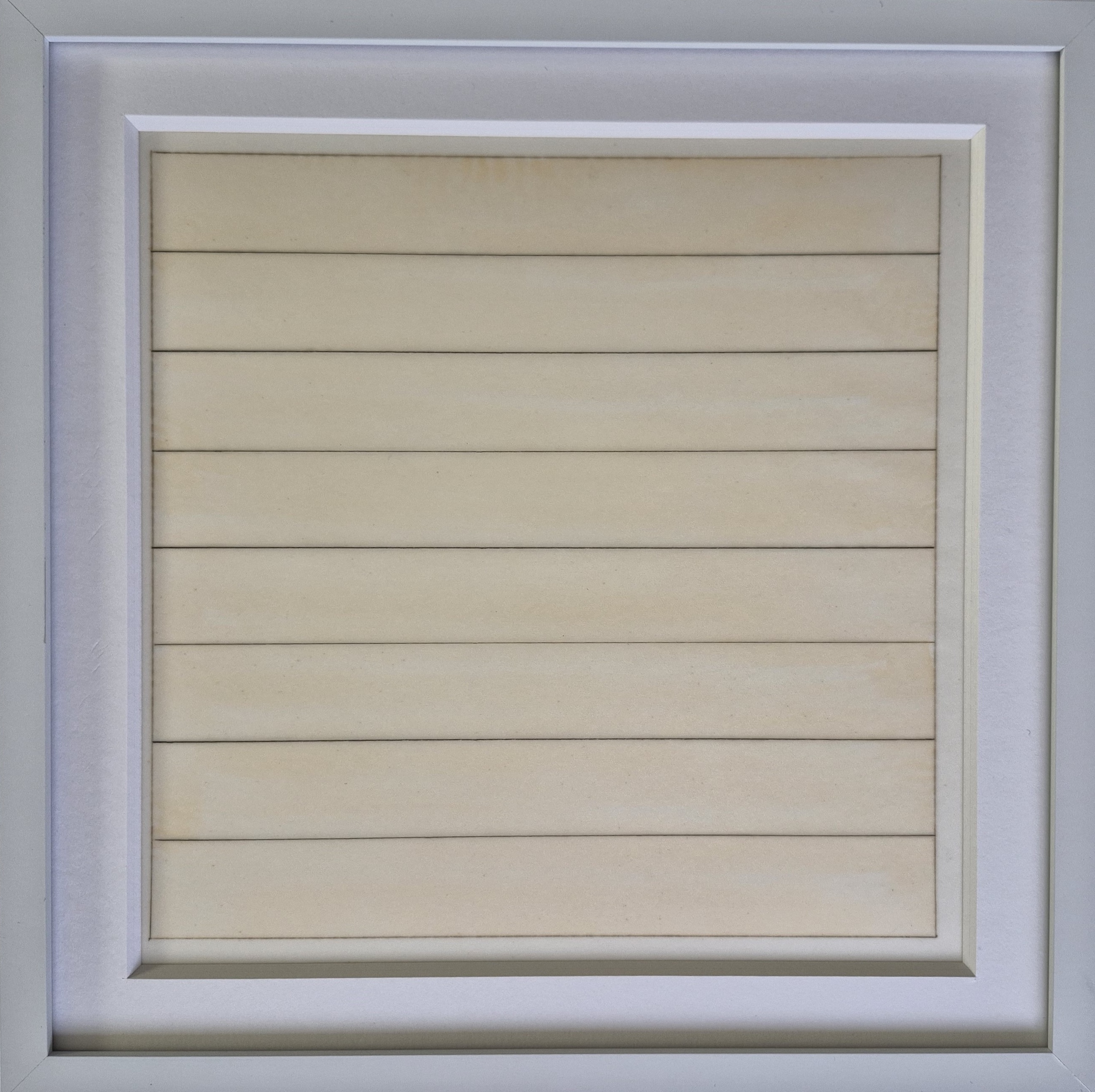 Litografía sobre pergamino vitela. – No firmada ni numerada. – Publicada por Nemela & Lenzen GmbH, Mönchengladbach, y el Stedelijk Museum, Ámsterdam, con motivo de la retrospectiva de Agnes Martin en 1991 en el Stedelijk Museum. Untitled 9 de Agnes Martin es una litografía de 1991 sobre pergamino, producida para su retrospectiva en el Stedelijk Museum. La obra presenta bandas horizontales amplias en tonos tierra claros, con sutiles variaciones de textura. A diferencia de sus composiciones basadas en líneas, esta pieza se acerca más a la abstracción atmosférica, evocando serenidad y paso del tiempo. Las divisiones suaves crean un ritmo contemplativo. Editada en una tirada de 2500, refleja la sensibilidad de Martin hacia la simplicidad emocional y la armonía silenciosa.