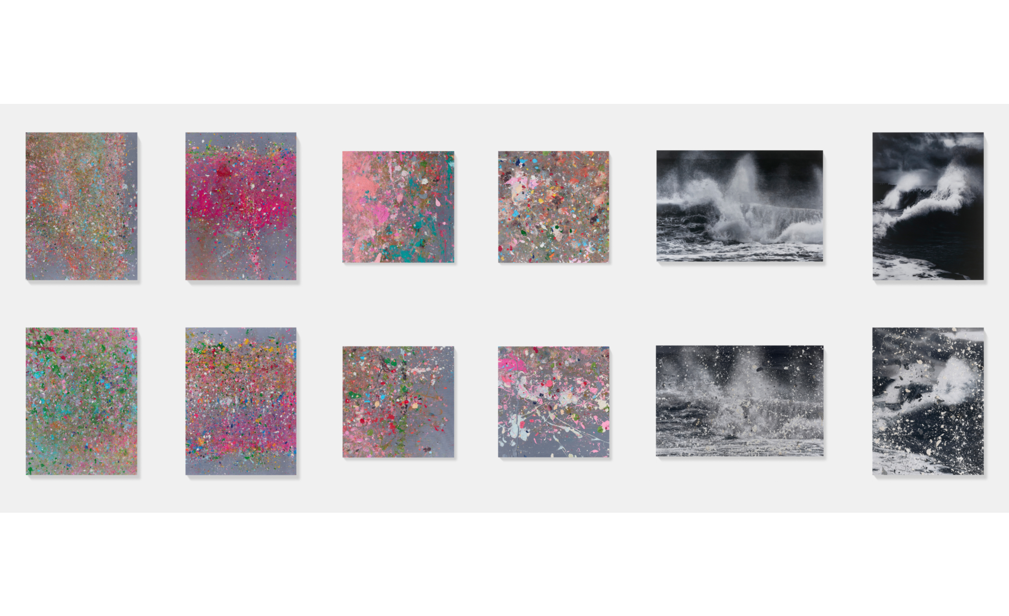 Full set of 12 works, matching numbers. - Laminated Giclée prints on aluminium composite panel - Hand-signed on the label by the artist. Where the Land Meets the Sea de Damien Hirst es un impactante conjunto de 12 impresiones Giclée laminadas sobre paneles compuestos de aluminio, creadas en 2023 y firmadas a mano. La serie combina composiciones abstractas llenas de salpicaduras de color con fotografías monocromáticas del mar. Las obras abstractas, caóticas y vibrantes, contrastan con las imágenes serenas pero potentes de olas rompiendo. Esta dualidad crea un diálogo entre naturaleza y arte, emoción y contención. Cada pieza mide 90 x 135 cm, unificando visualmente la colección.