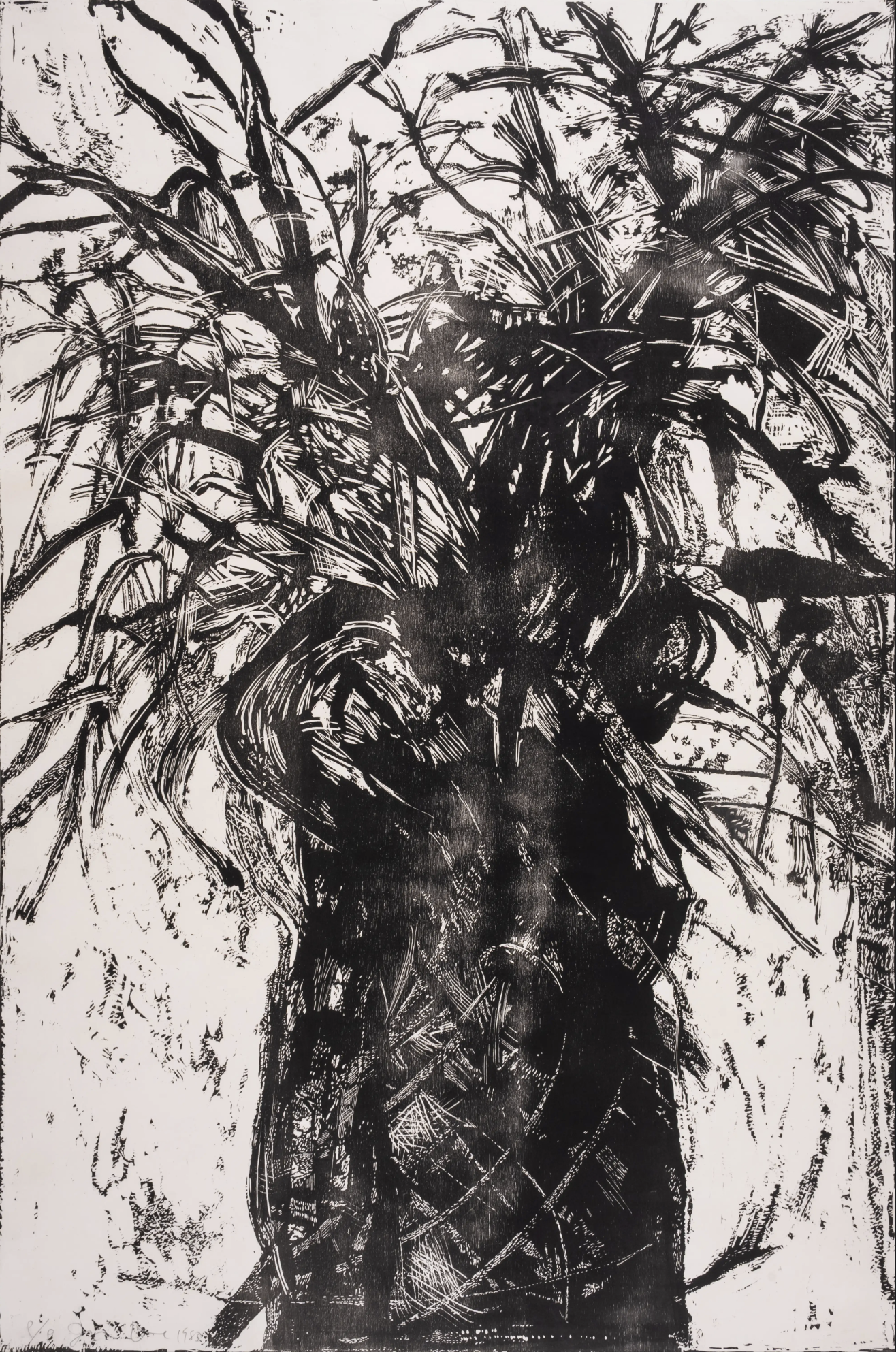 Gravure sur bois sur papier vergé crème. Imprimée par Jack Shirreff à 107 Workshop, Wiltshire. Publiée par Pace Gallery, New York. Référence : D’Oench et Feinberg 147. Left Panel, from The Three Sydney Close Woodcuts (1983) de Jim Dine est une gravure sur bois puissante en noir et blanc, représentant de manière expressive et presque abstraite des formes organiques denses. Des traits audacieux et des textures brutes envahissent la composition, probablement une plante ou un arbre sauvage, débordant d’énergie visuelle. Les forts contrastes et les marques gestuelles soulignent l’implication physique de Dine avec le médium, laissant le grain du bois guider l’image finale. Cette épreuve d’imprimeur, hors tirage de 36, a été réalisée par Jack Shirreff à 107 Workshop et témoigne de l’exploration continue de Dine des formes naturelles dans une approche presque sculpturale de l’estampe.