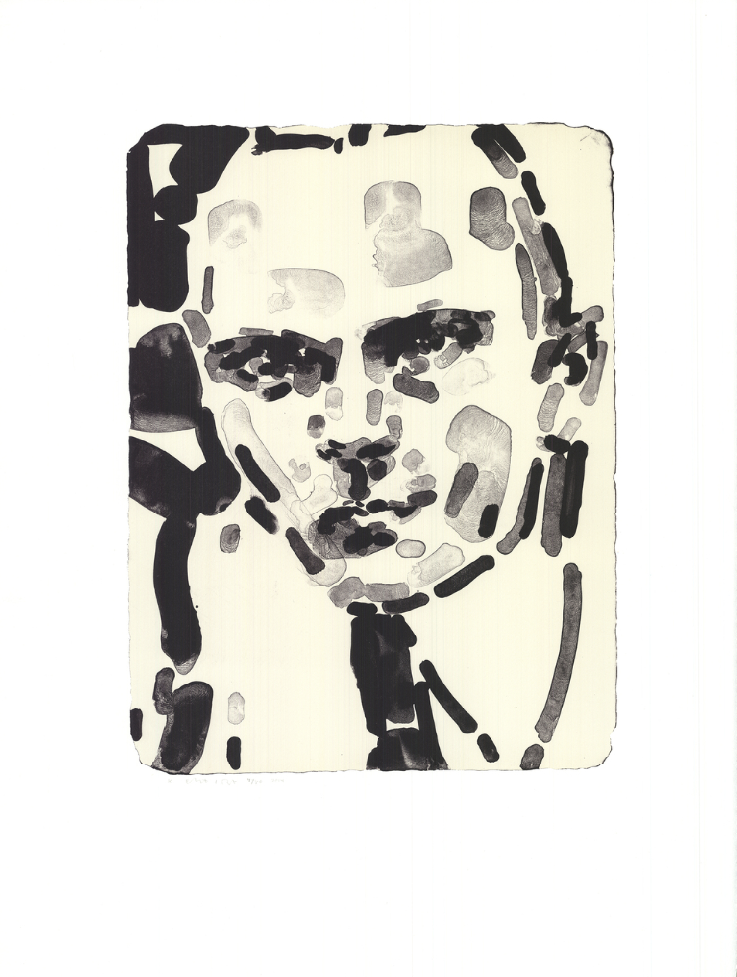 Publisher: Editions Copenhagen Signed and numbered. Kristian (2014) van Elizabeth Peyton is een litho waarin het menselijk gezicht is teruggebracht tot een fragmentarisch patroon van donkere penseelachtige streken op een lichte achtergrond. Hoewel abstract, straalt het werk emotie en karakter uit. Peyton’s kenmerkende stijl—intiem, gestileerd en spontaan—komt tot uiting in de losse penseelvoering. In plaats van directe gelijkenis draait het om sfeer en indruk. Deze litho maakt deel uit van een oplage van 50 exemplaren en verkent de identiteit via de directheid van de lijn.