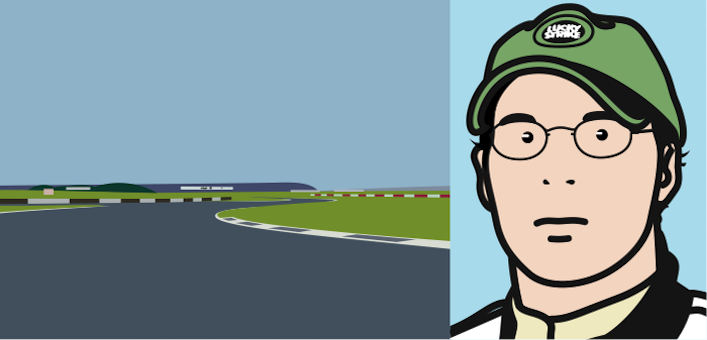 Mixed media on paper. Signed & numbered. Blending portraiture and landscape into a stylized visual narrative, Imagine you are driving (fast): Jacques by Julian Opie pairs a simplified racetrack scene with a close-up depiction of a Formula One driver identified only as “Jacques.” Using flat planes of color and thick black outlines, Opie reduces both human form and environment into a visual shorthand rooted in signage and digital aesthetics. The work evokes the sensation of speed and focus, with the track curving into the distance and the driver's intense gaze frozen in time. This piece is part of a limited edition of 50, signed and numbered, and reflects Opie's signature interest in modern identity and movement.