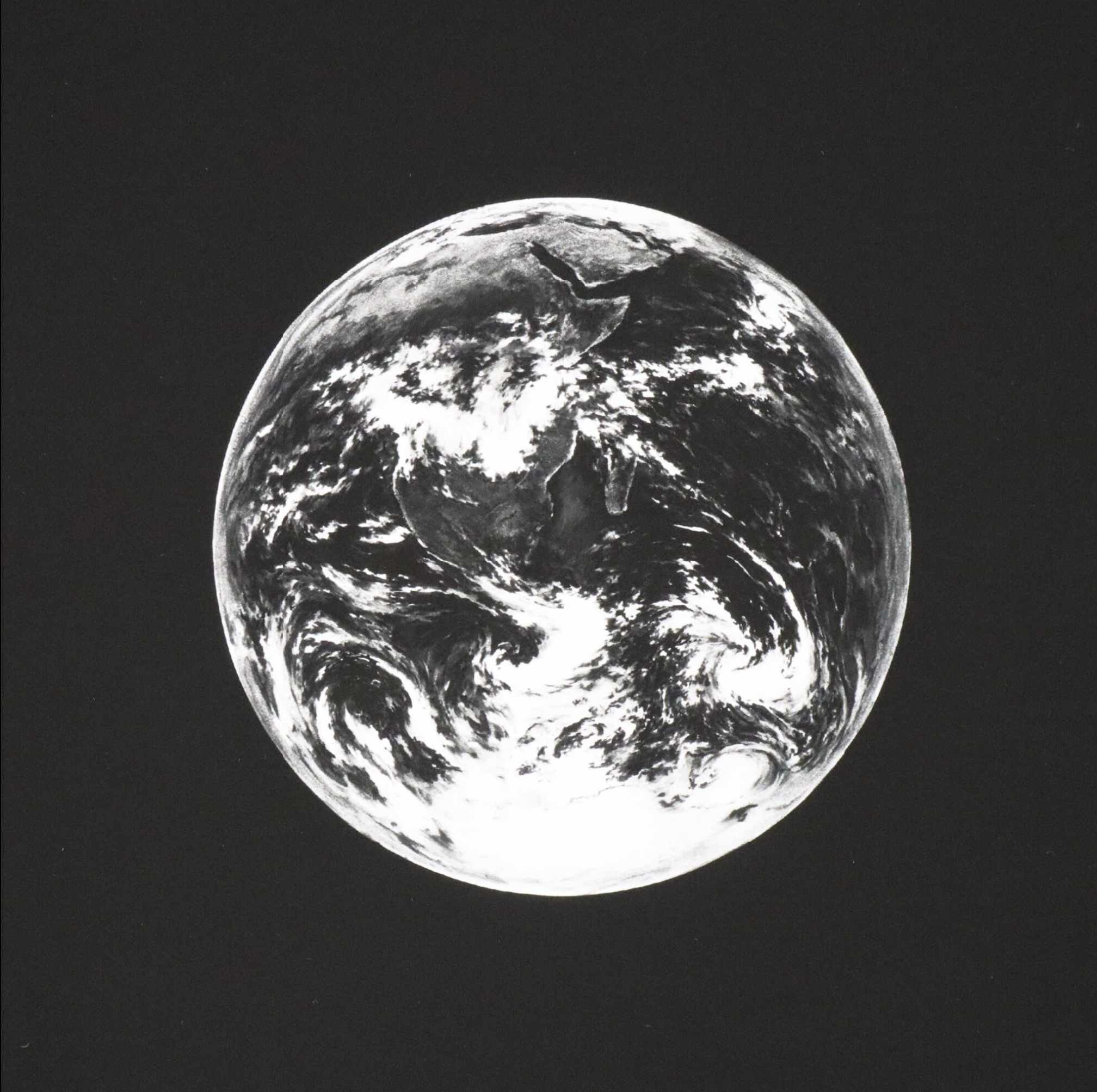 Archival pigment print. Earth by Robert Longo, created in 2017, is an archival pigment print that captures a stark black-and-white rendering of the planet suspended in space. Measuring 45.7 × 45.7 cm, the image draws from satellite photography but is reimagined with hyperreal precision and graphic intensity. Longo’s Earth is isolated against a void-like black background, evoking both a sense of wonder and fragility. This minimalist yet monumental work reflects Longo’s ongoing engagement with political and environmental consciousness, emphasizing the planet’s delicate position in an increasingly volatile world. The piece is from a limited edition of 15.